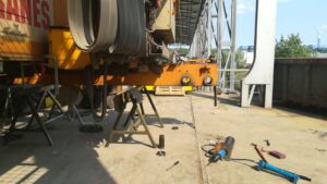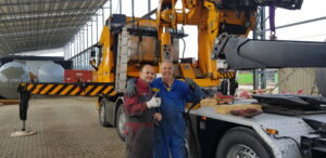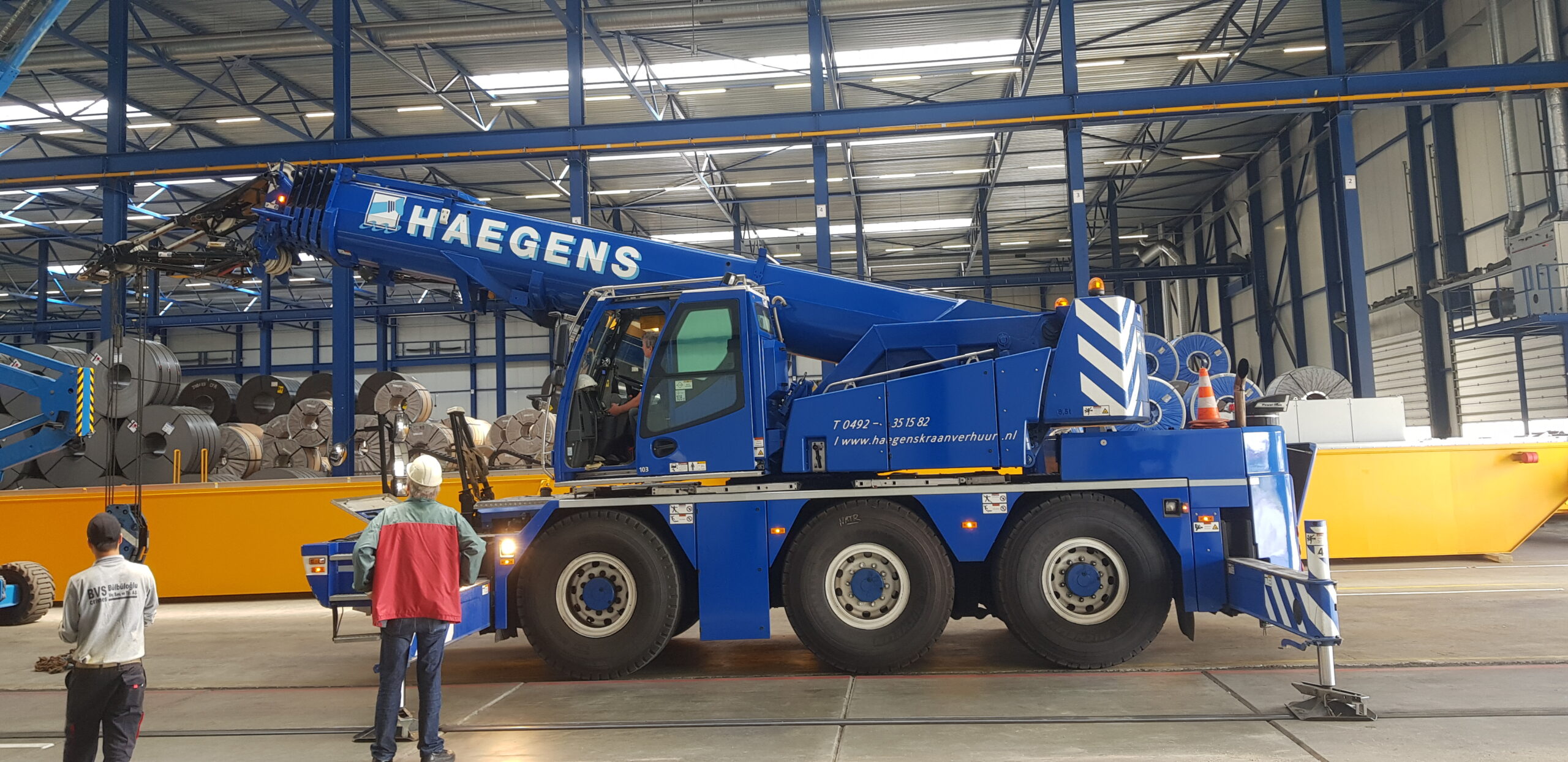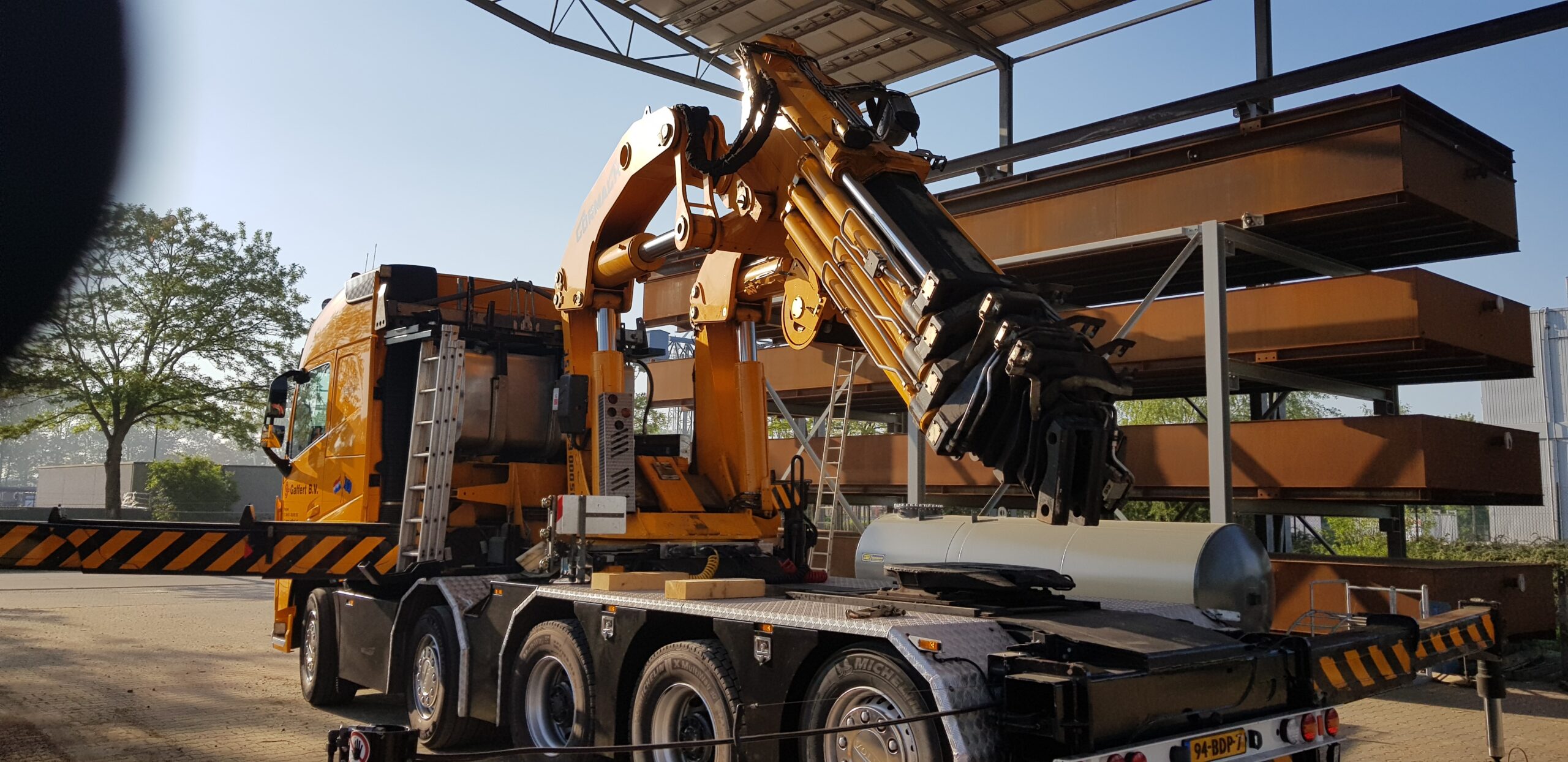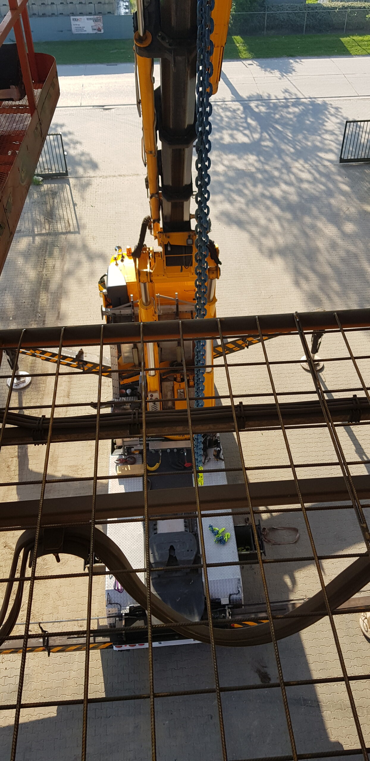 Wel moest de kraan naar beneden gehaald worden. Mede dankzij de trouwe leveranciers konden we vrij snel een mobiele kraan regelen om het werk snel, efficiënt en veilig uit te voeren.