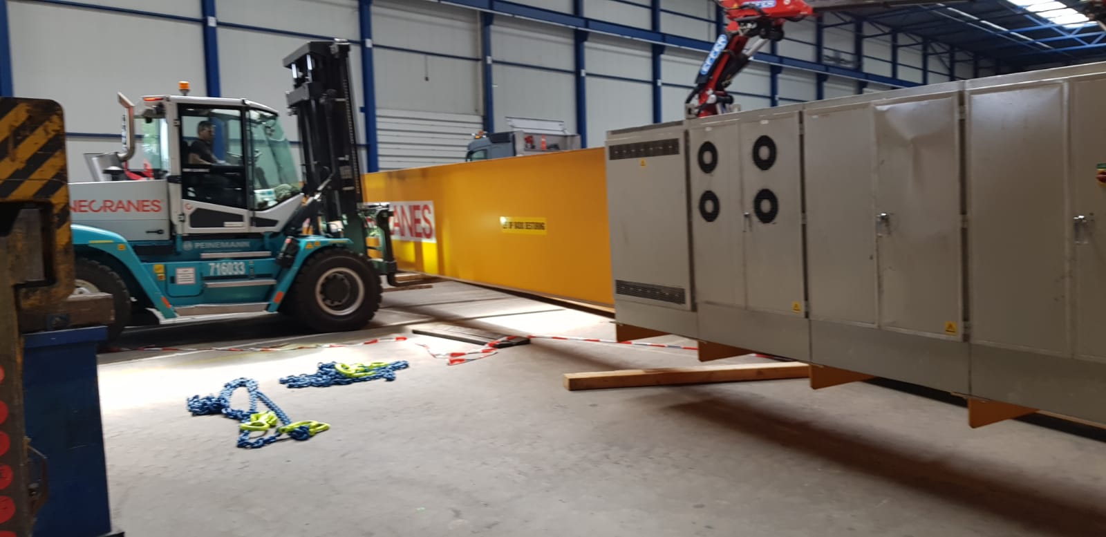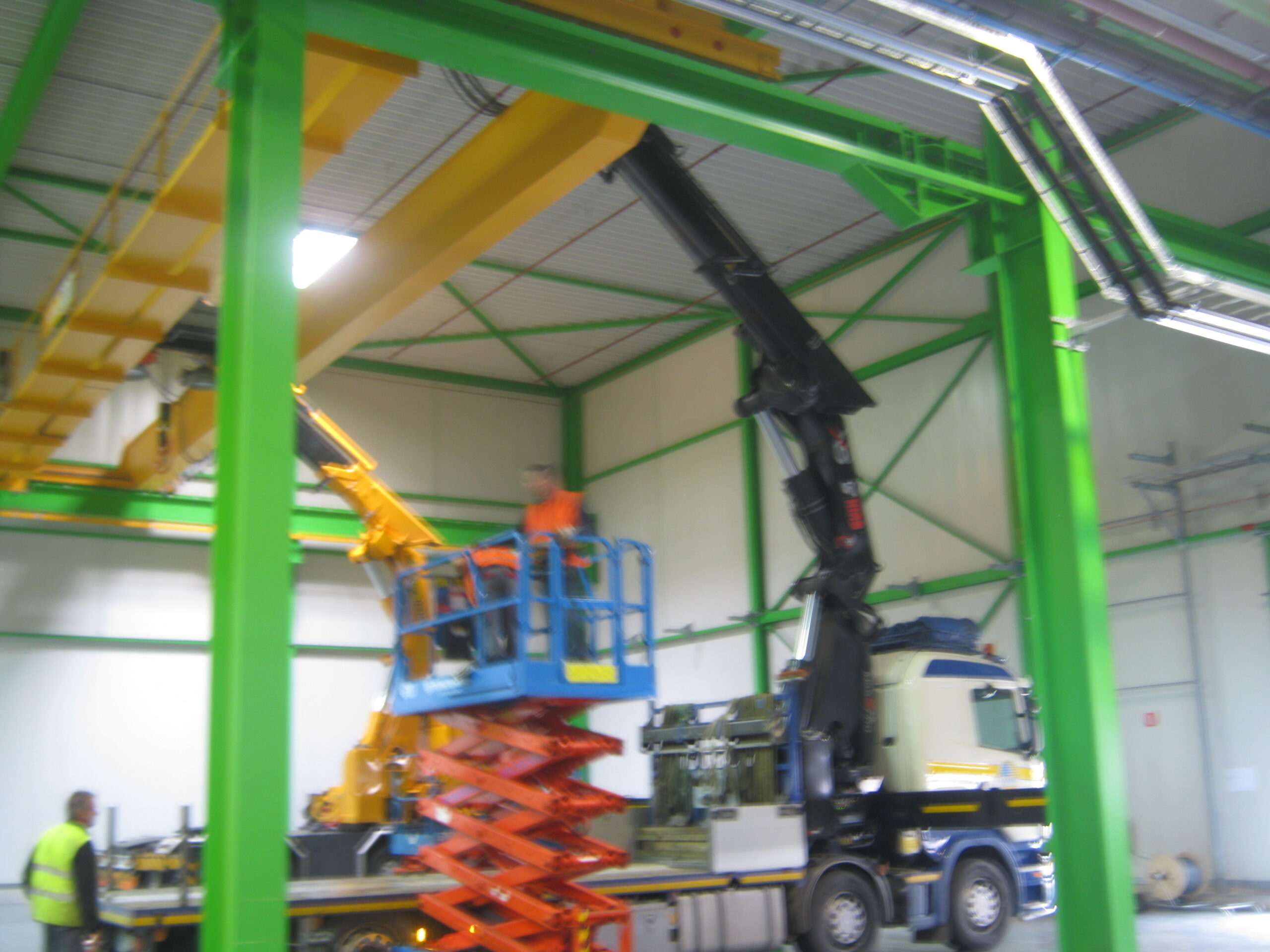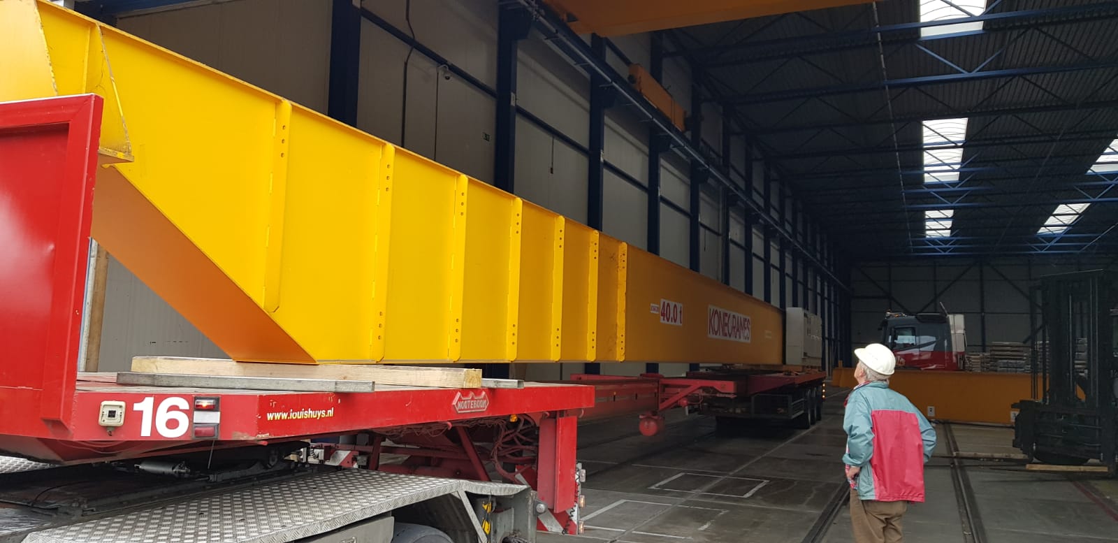 Door het verkoop en het monteren van 2 nieuwe kranen / rolbruggen met een hijs capaciteit van 2 x 40 ton moest de bestaande kraan / rolbrug verhuist worden.
