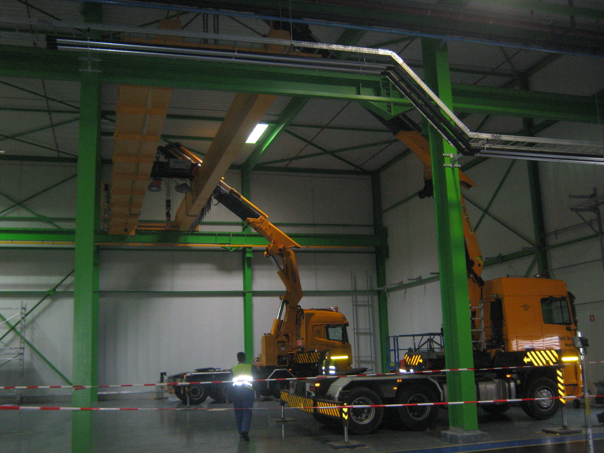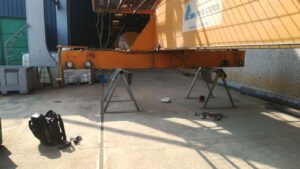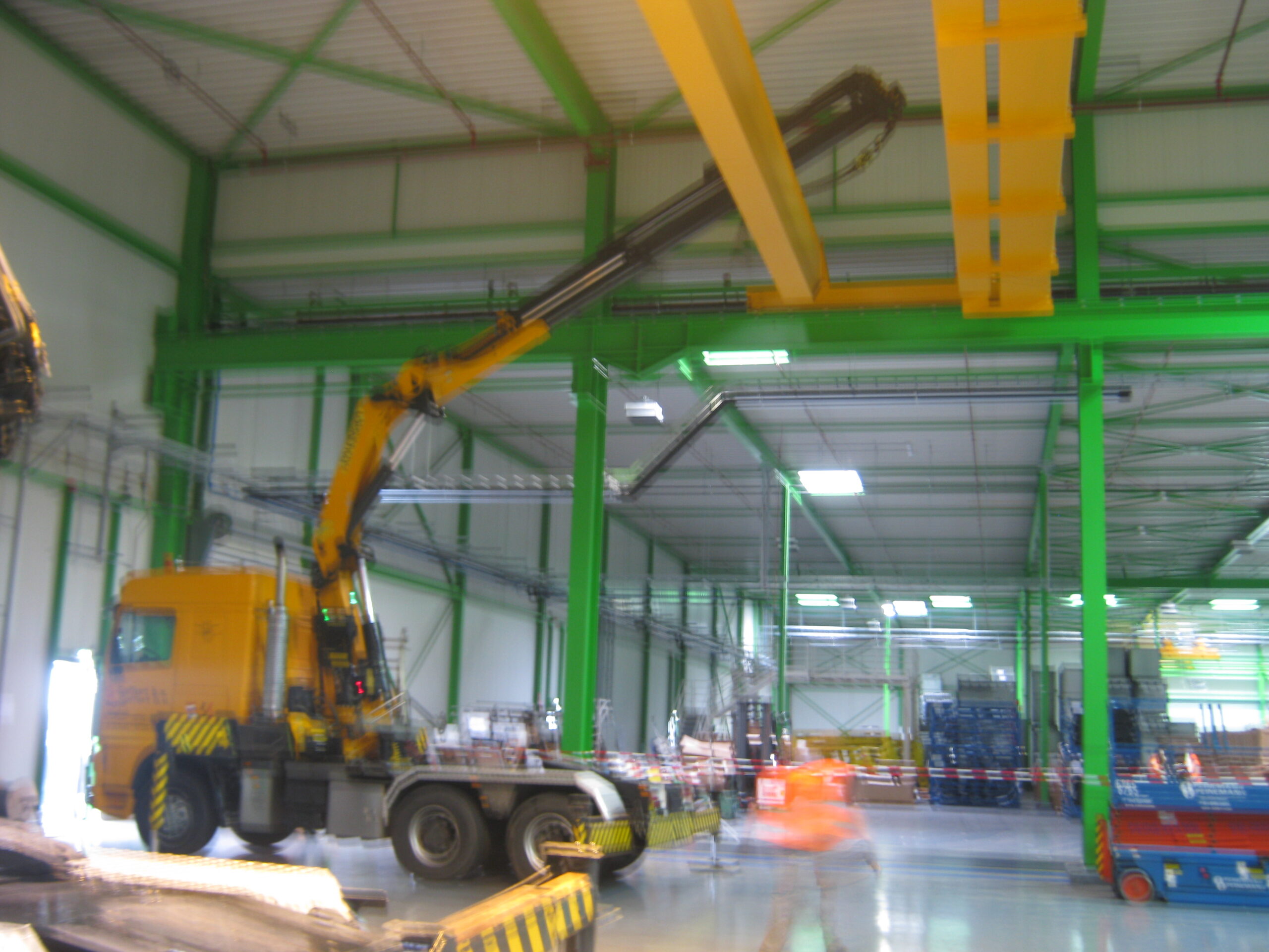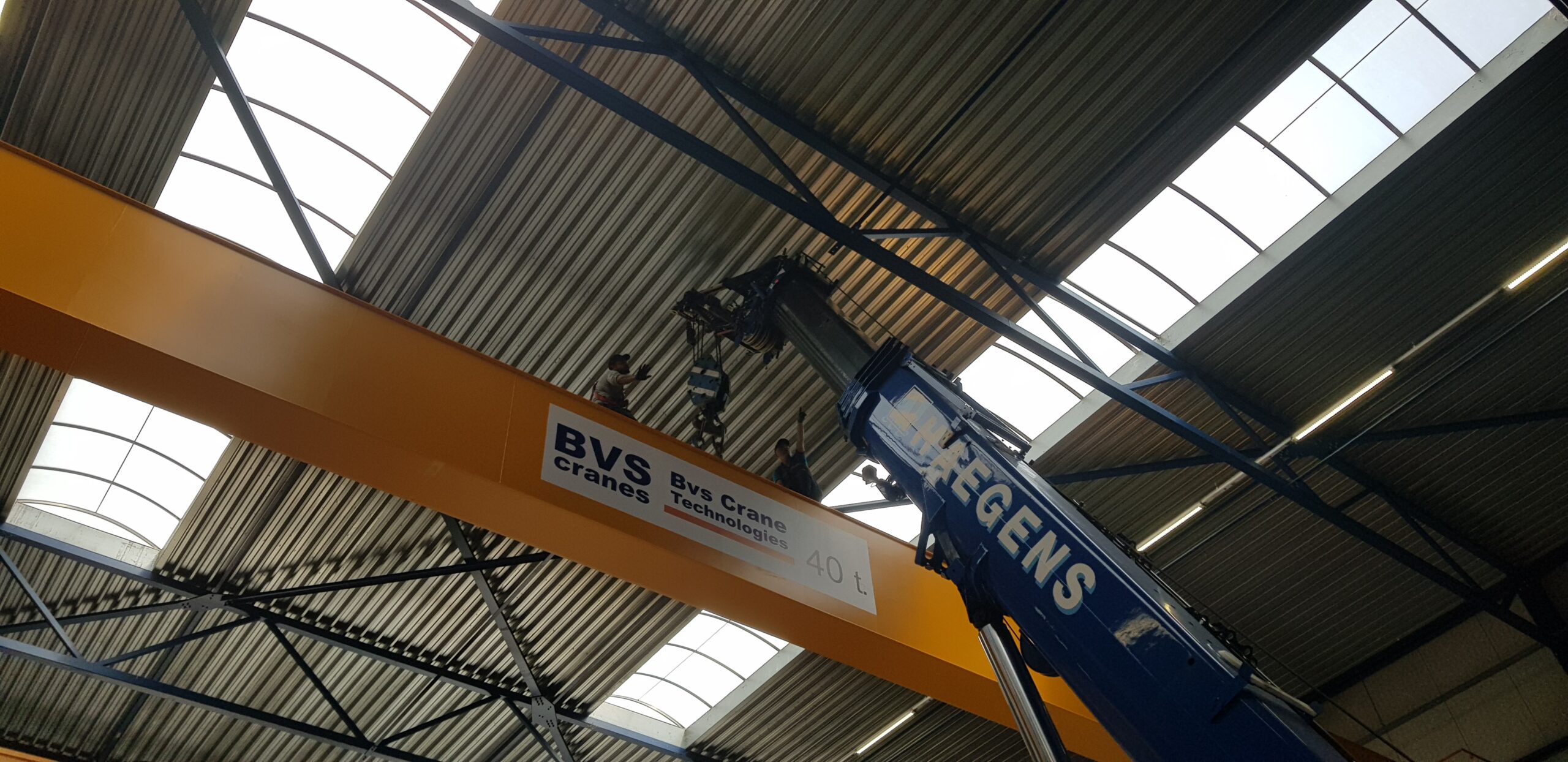 Door het verkoop en het monteren van 2 nieuwe kranen / rolbruggen met een hijs capaciteit van 2 x 40 ton moest de bestaande kraan / rolbrug verhuist worden.