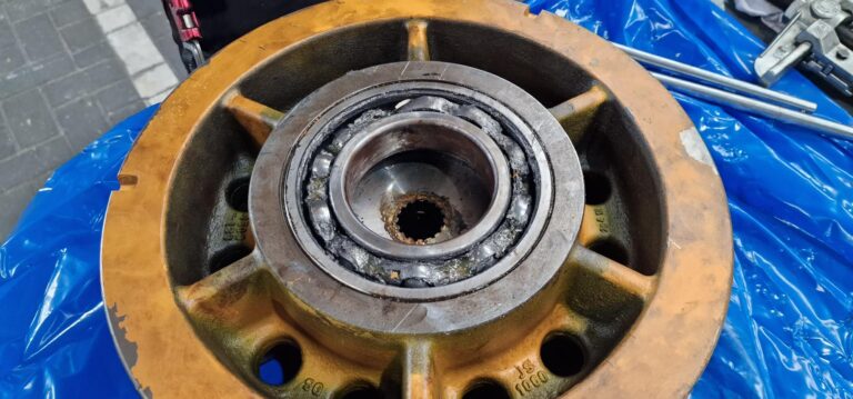 Er is ontdekt dat de kraan rijlagers defect waren waardoor we gelijk met de hele team aan konden doorwerken.