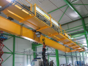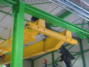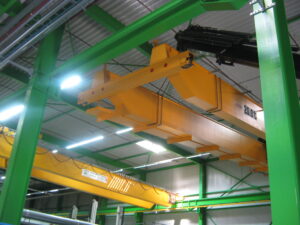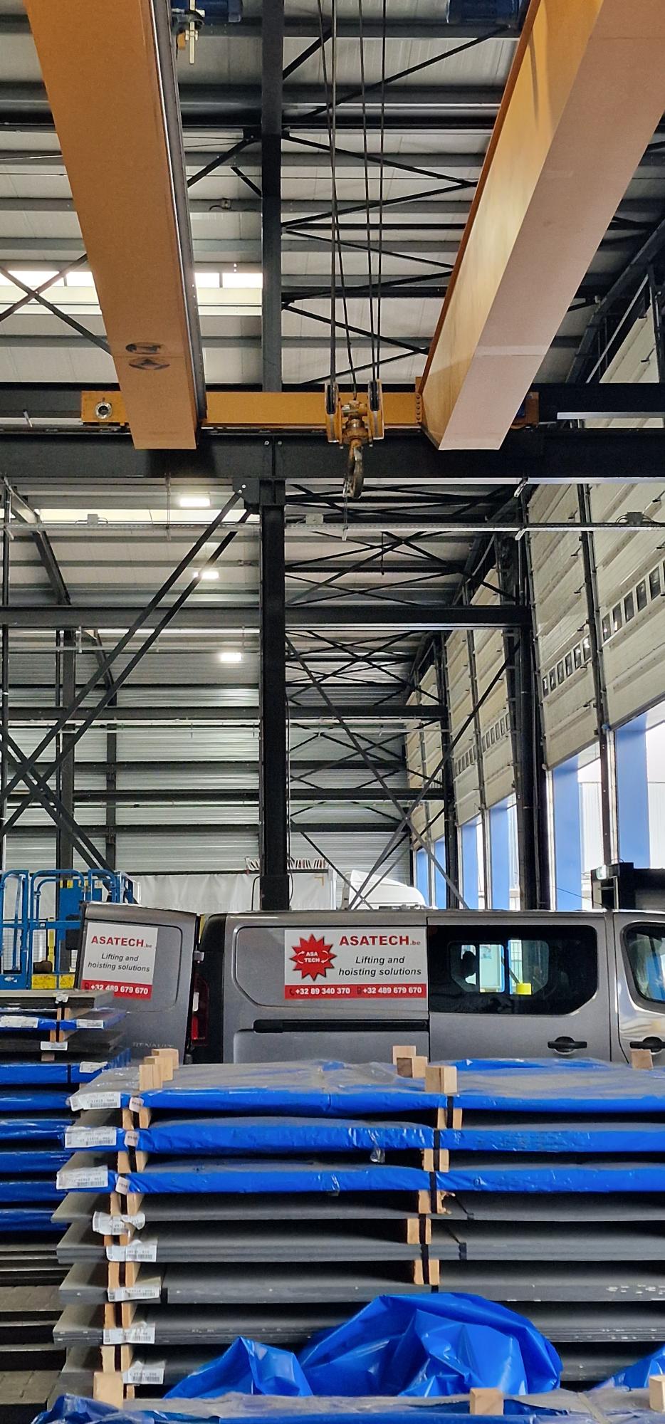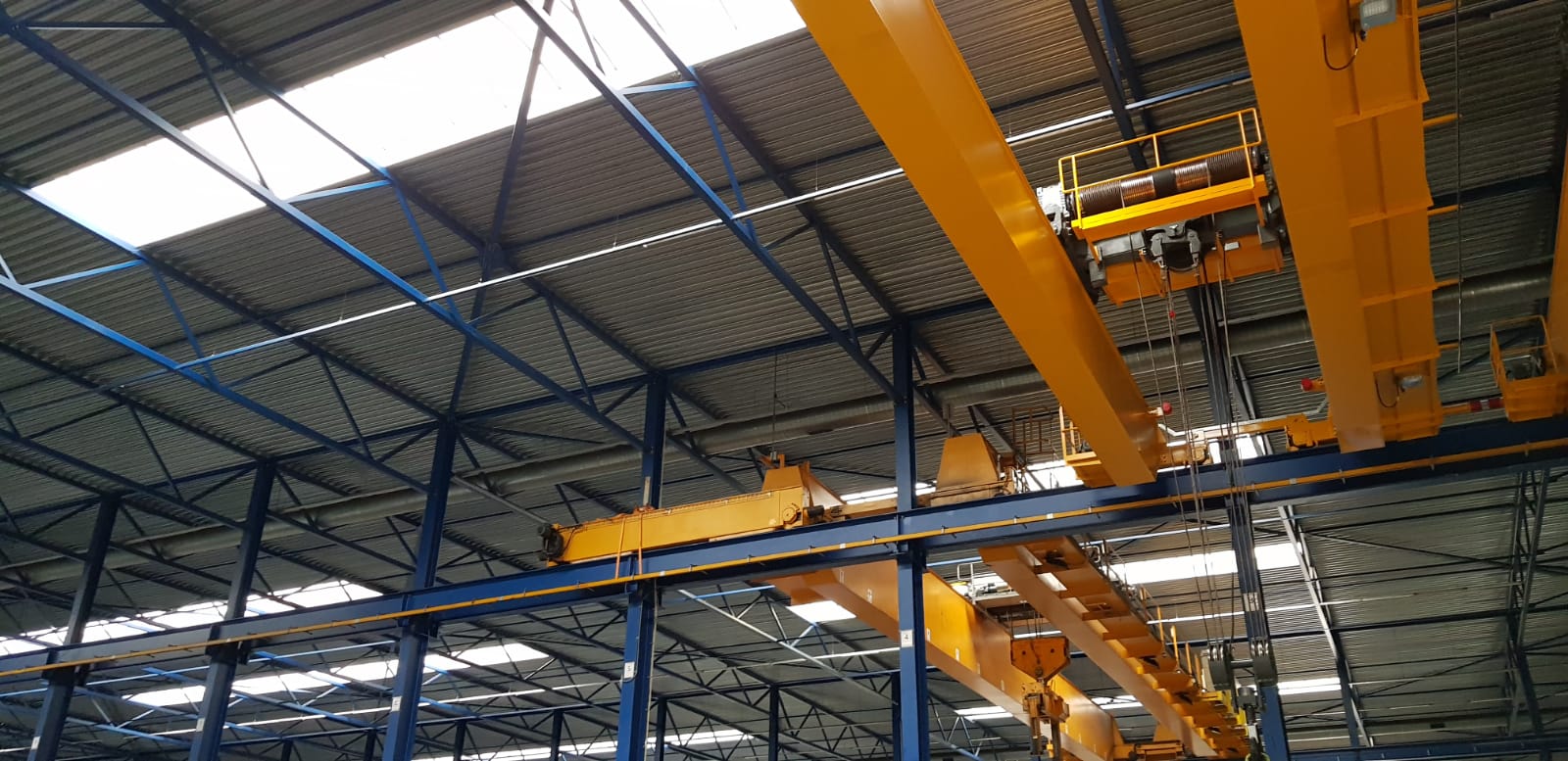 Hier betreft het verkoop, montage en oplevering van 2 nieuwe productie open lier hijskranen / rolbruggen met een hoge FEM klasse voor het handelen van coils en platen voor in de staal industrie.