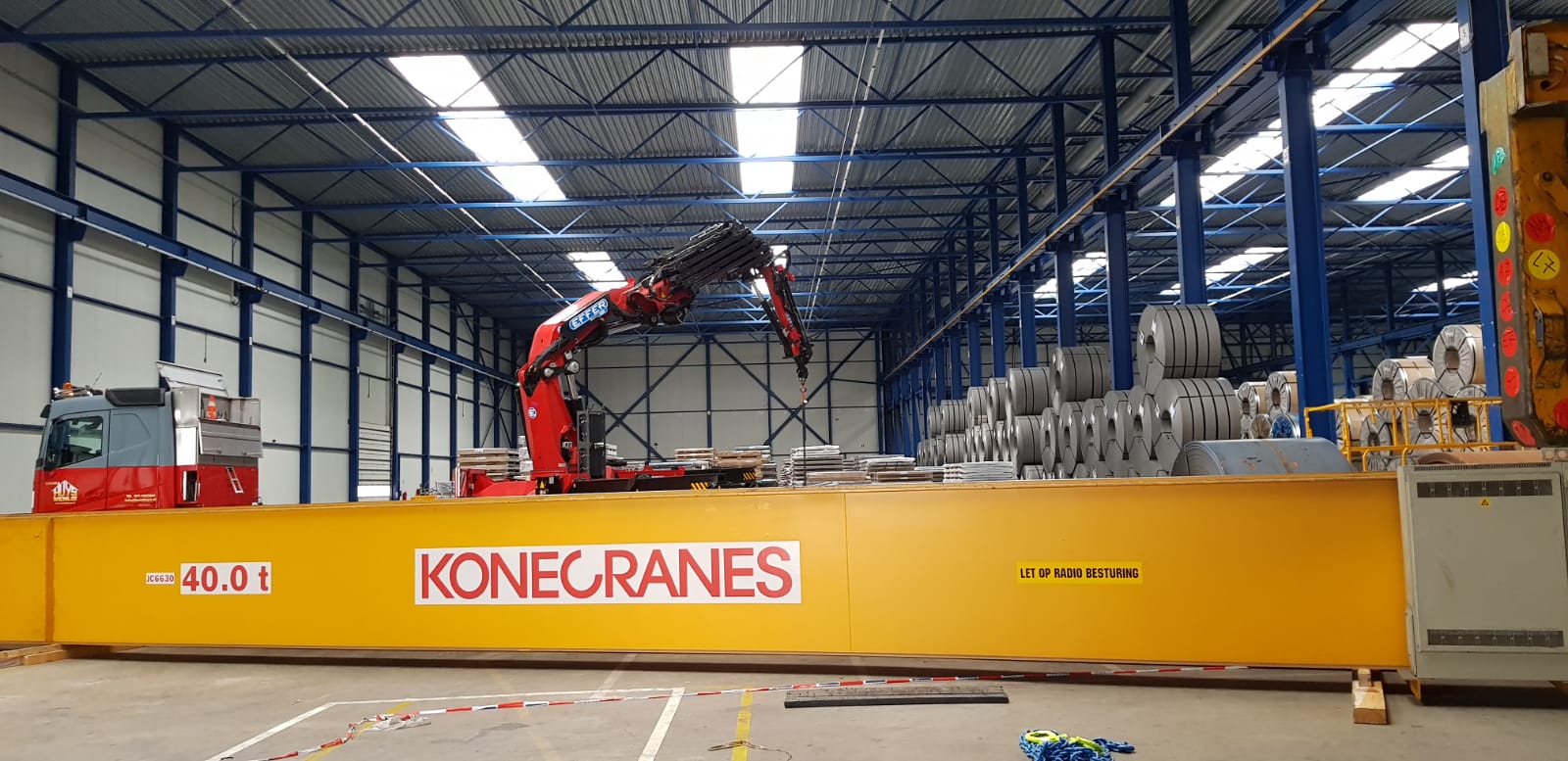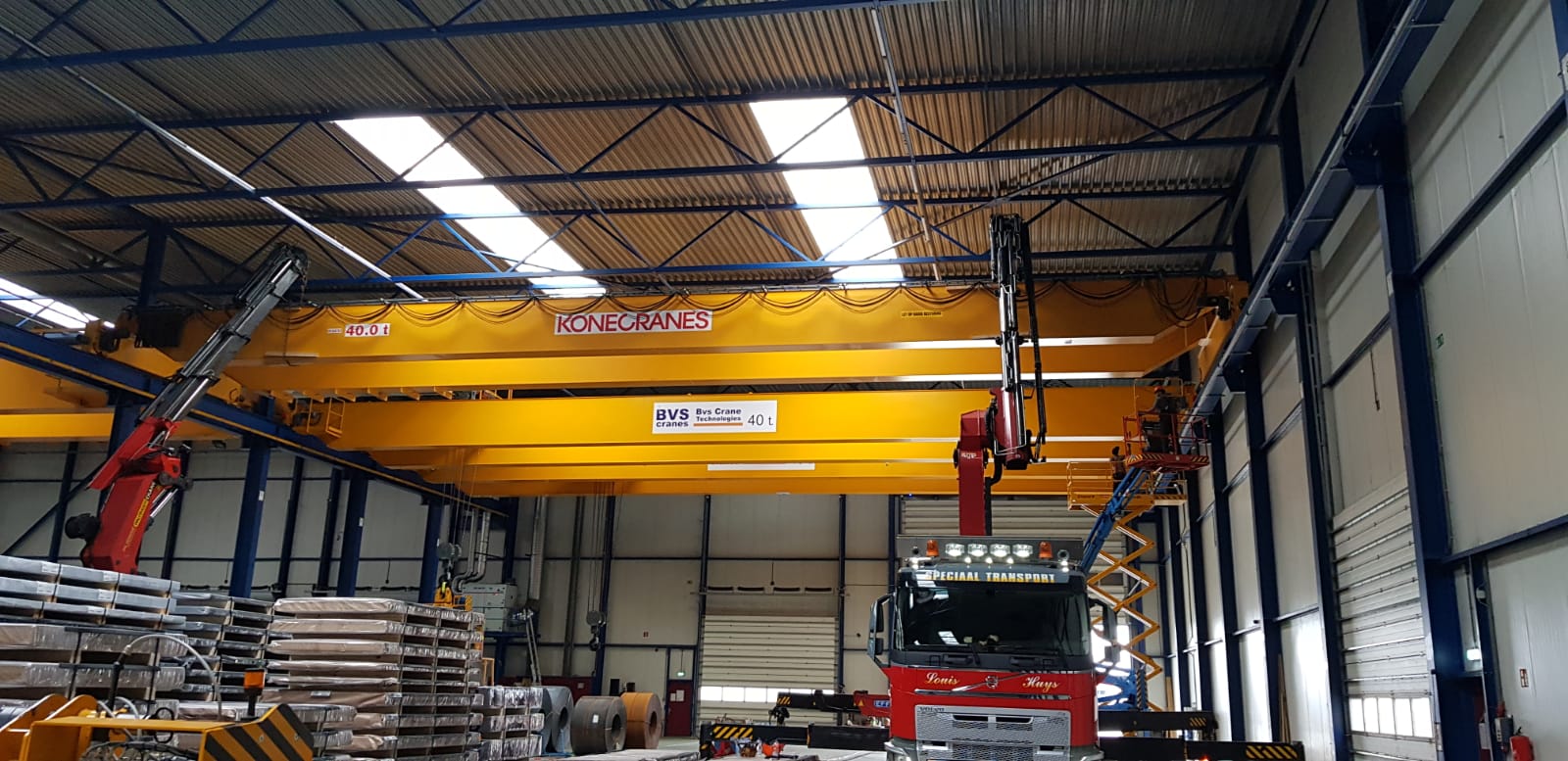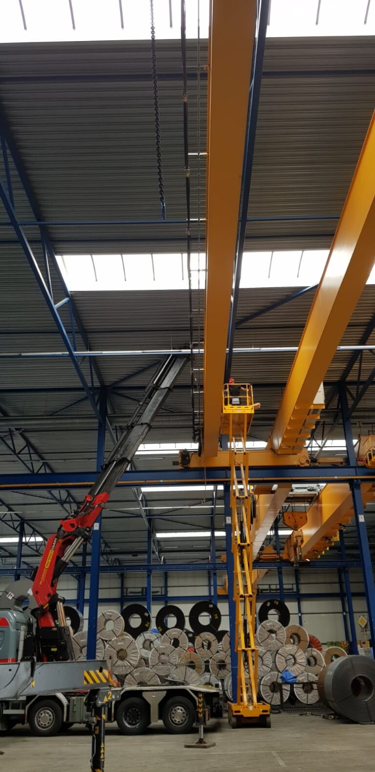 Klant vroeg hier om de 20 tons kraan van plaats te wisselen om productie technisch gegeven.