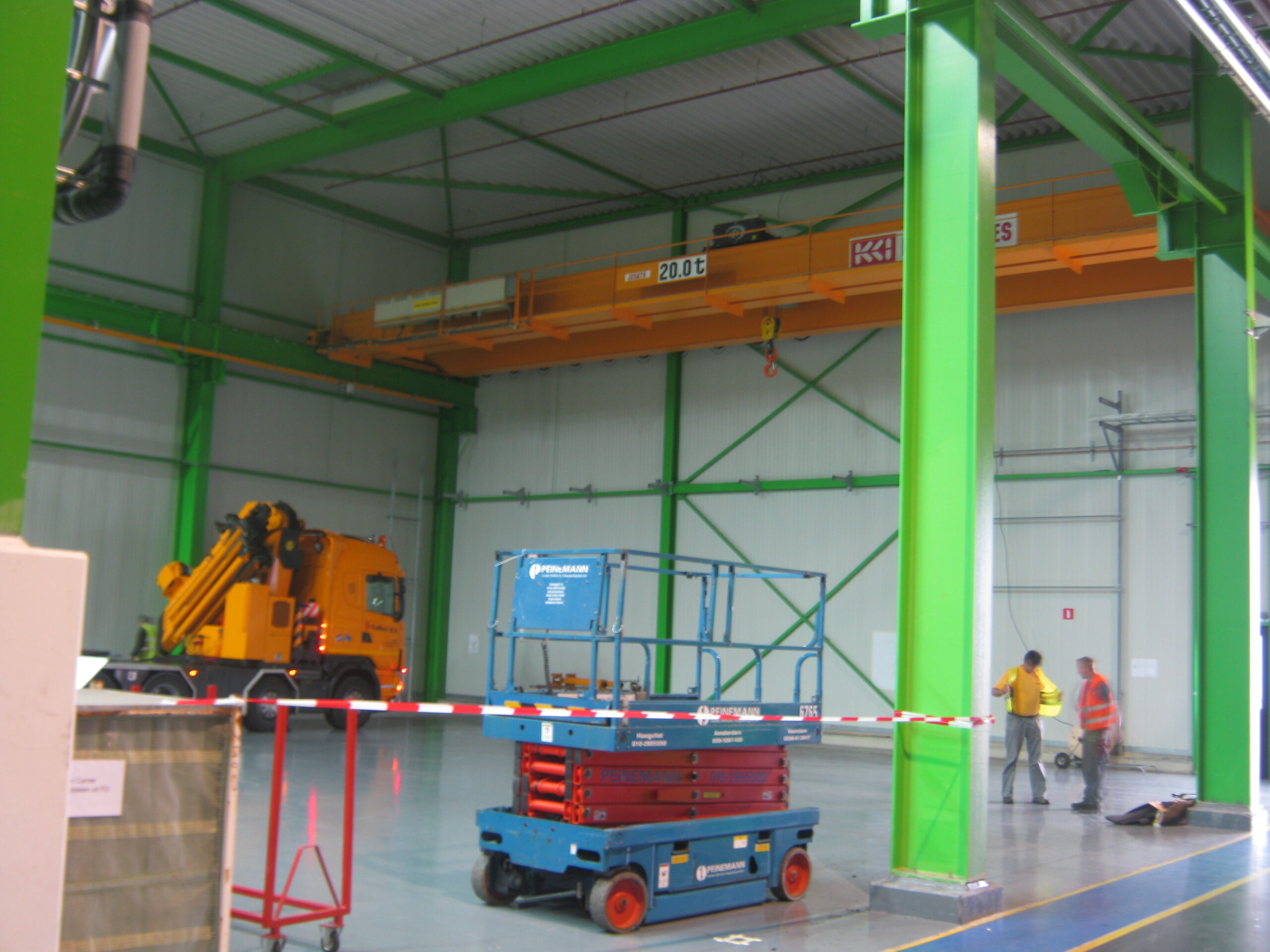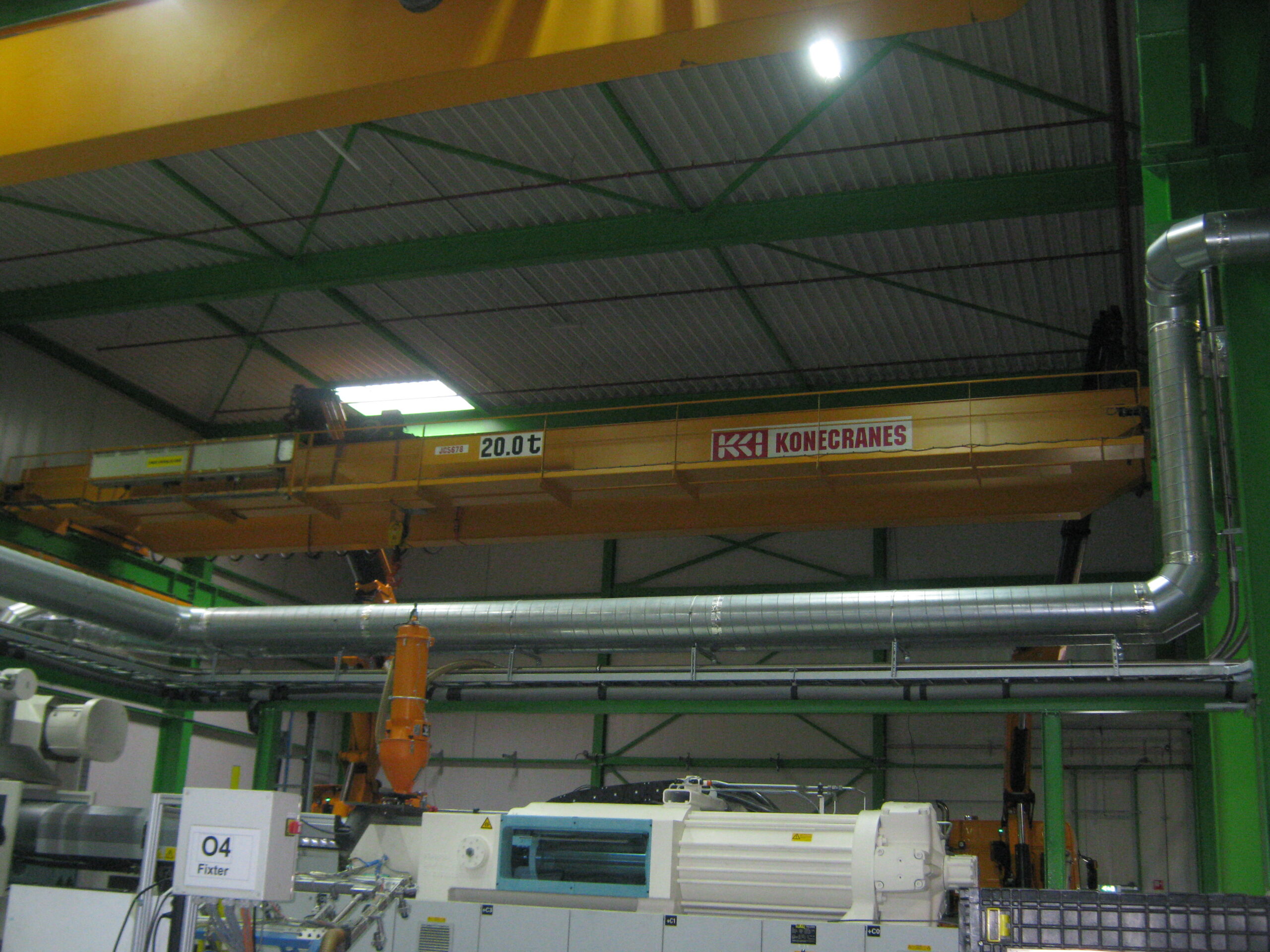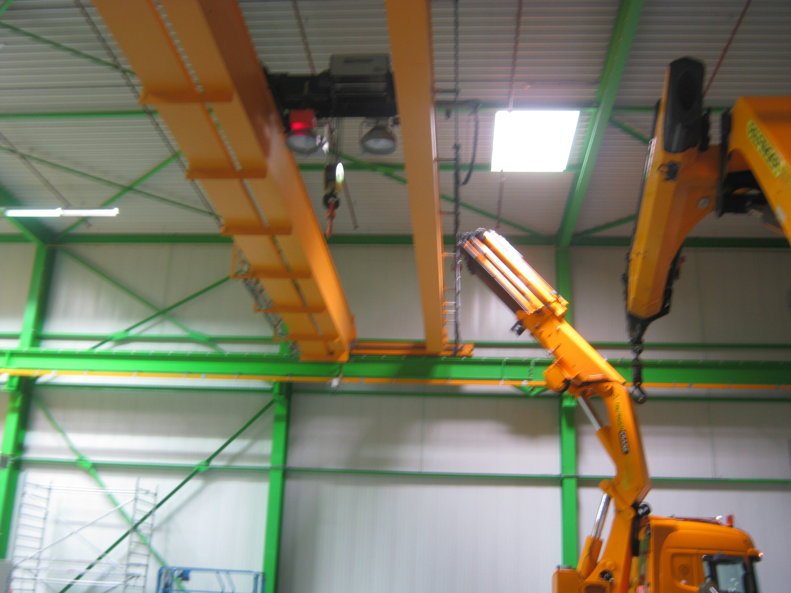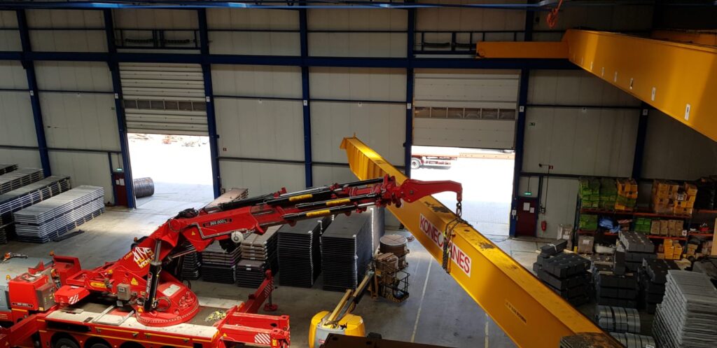 Klant vroeg hier om de 20 tons kraan van plaats te wisselen om productie technisch gegeven.